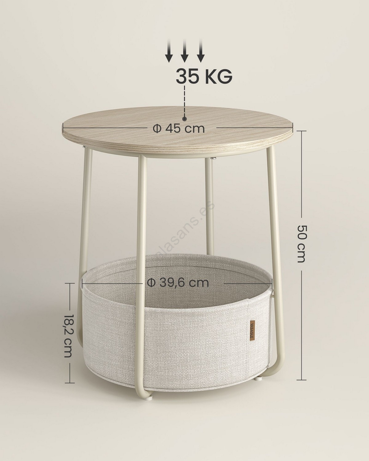 • Dispone de una cesta de tela en la parte inferior de 18,2 cm de altura y 39,6 cm de diámetro.