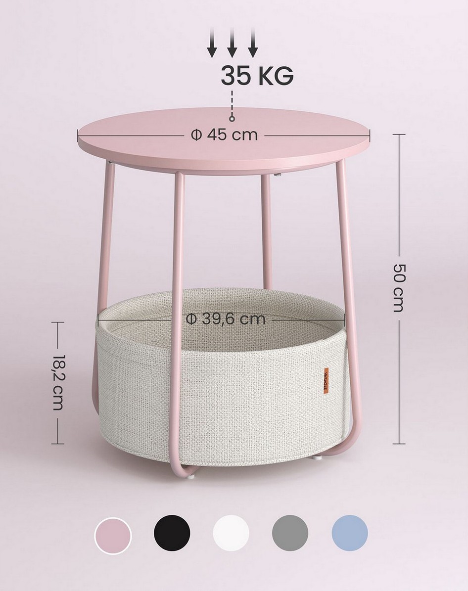 • Cuenta con una cesta de tela en la parte inferior de 18,2 cm de alto y 39,6 cm de diámetro.