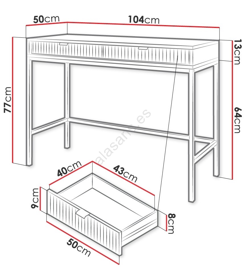 • Fabricado en metal y aglomerado laminado con un grosor máximo de 18 mm.