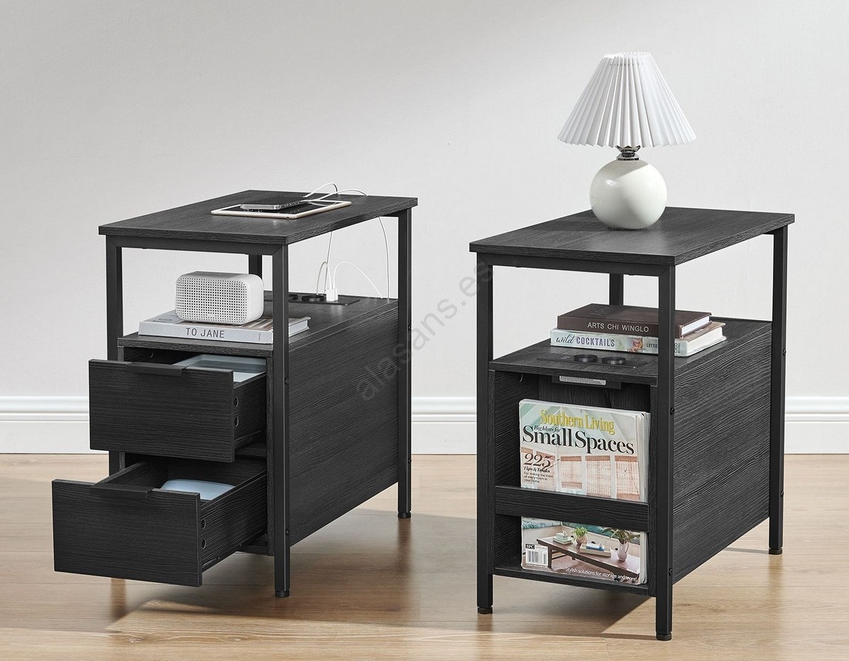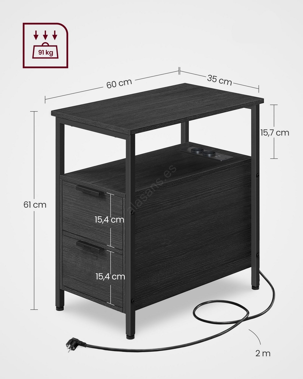Mesa auxiliar ROD con enchufes integrados y puertos USB, negro