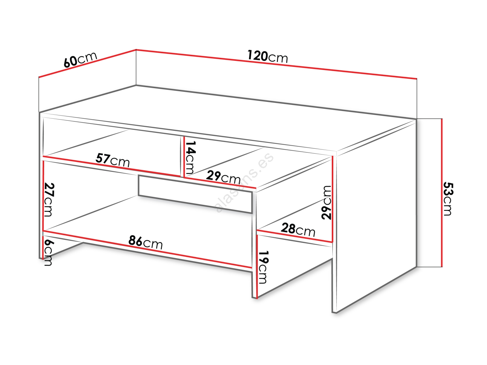 • Mesa de centro con amplia superficie superior y prácticas baldas para tener a mano los objetos que más utiliza.