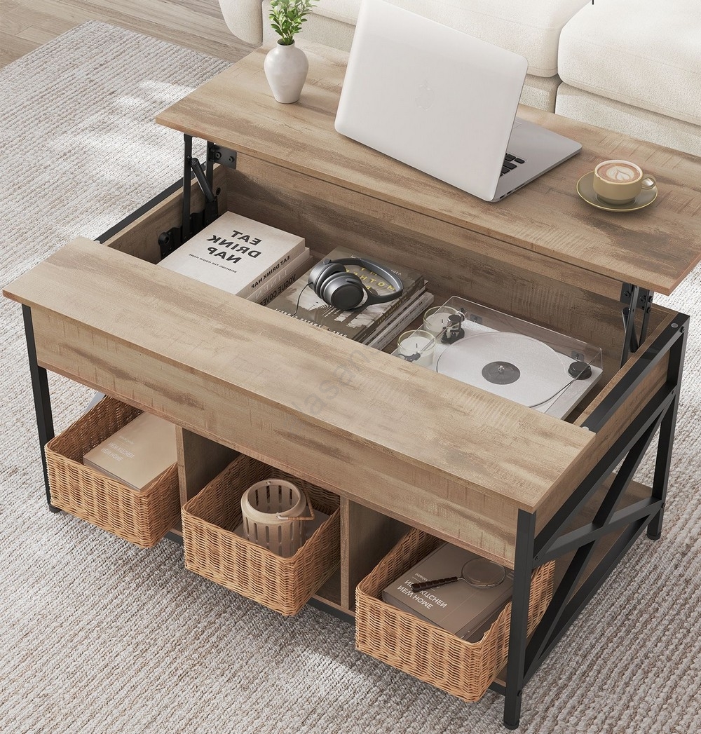 • Mesa de centro con tablero elevable NYRO marrón/negro