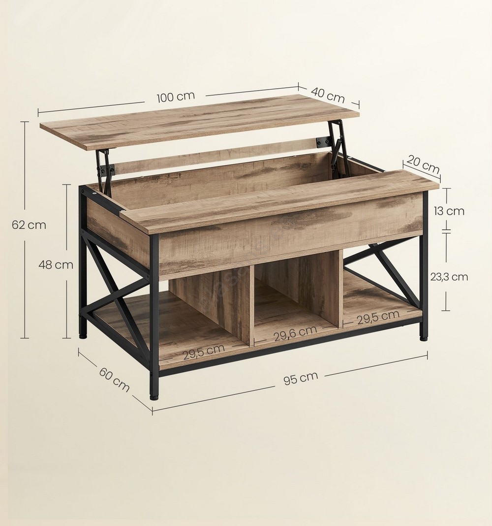 • Mesa de centro con tablero elevable NYRO, marrón/negro