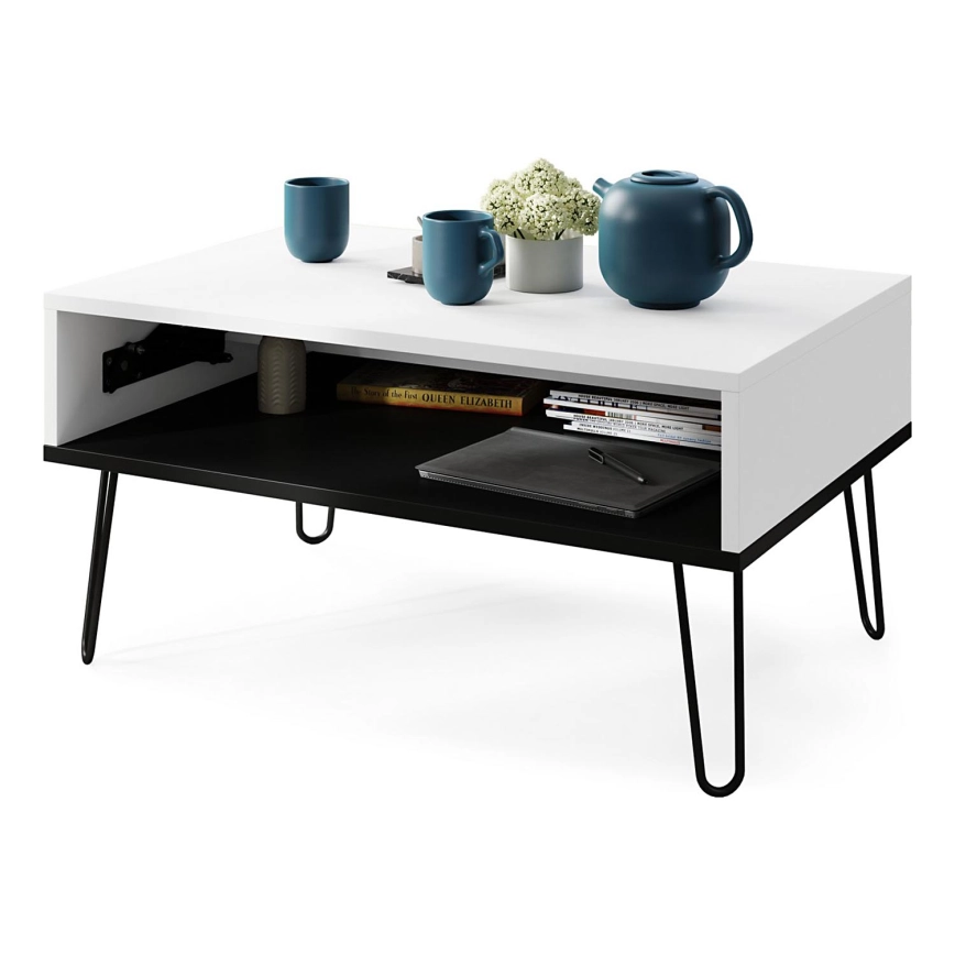 Mesa de centro con tapa elevable y balda HALIJA blanca/negra