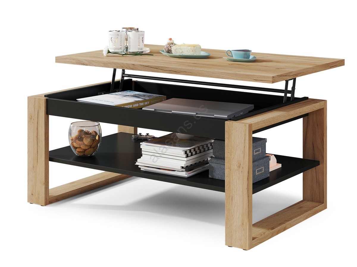 • Mesa de centro con sobre elevable y balda NEA roble craft/negro