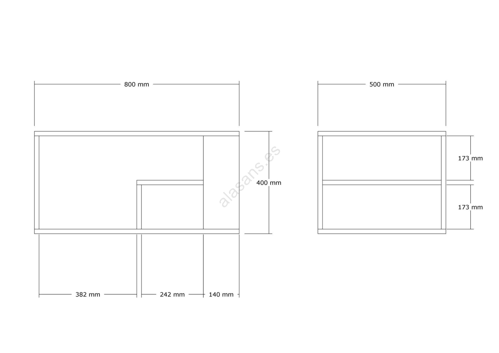• Ofrece un amplio espacio de almacenamiento gracias a sus estantes abiertos, ideal para libros, objetos decorativos y pequeños accesorios.