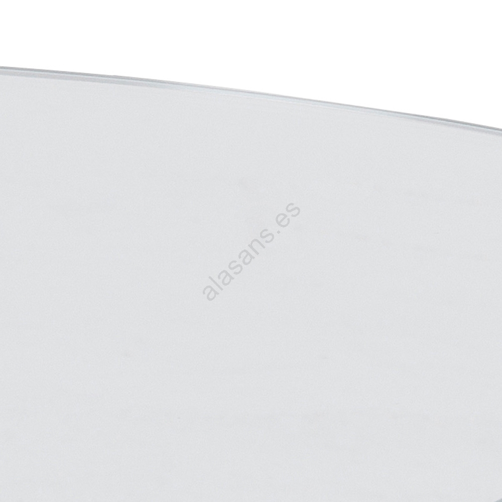 • La superficie de la mesa está fabricada en vidrio templado transparente y las patas en acero cromado.