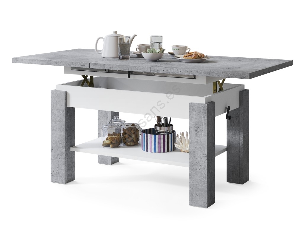 Mesa de centro extensible con balda ADONIS 110/150x68 cm gris hormigón/blanco