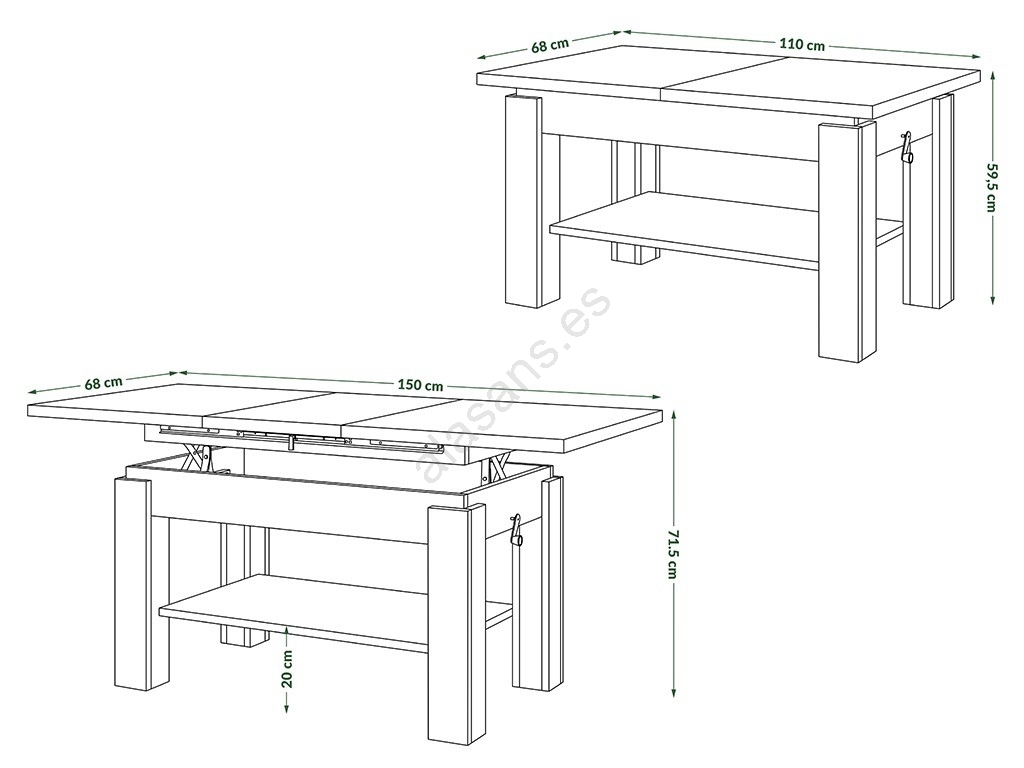 • Este modelo puede, según sus necesidades, servir como mesa de centro pequeña o comouna mesa decomedor, donde podrá comer o celebrar ocasiones familiares.