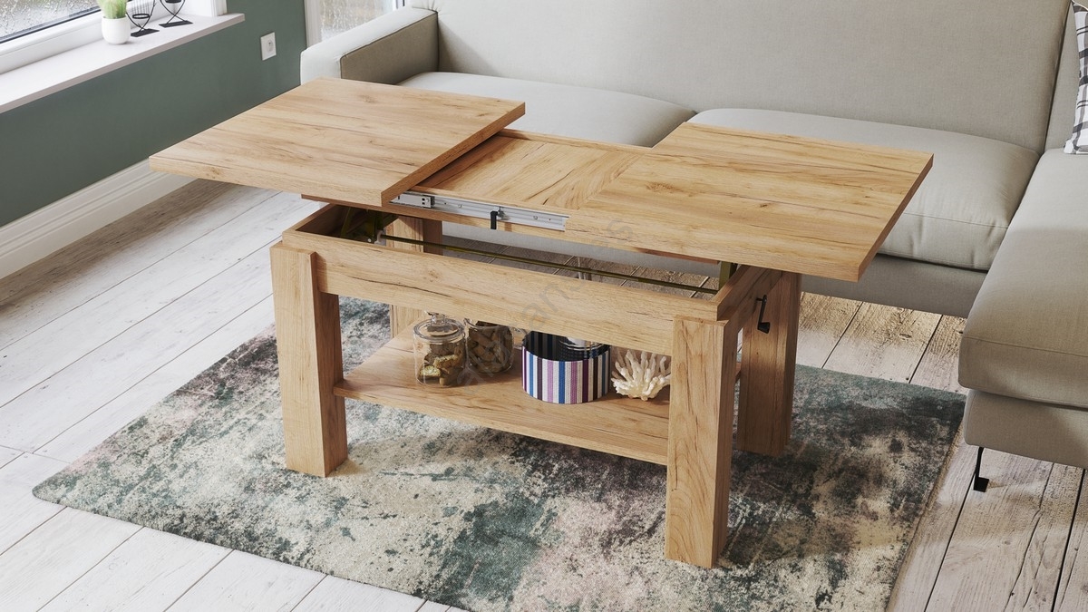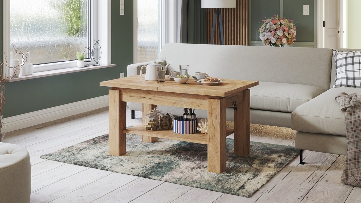 • Mesa de centro extensible con estante ADONIS 110/150x68 cm roble craft