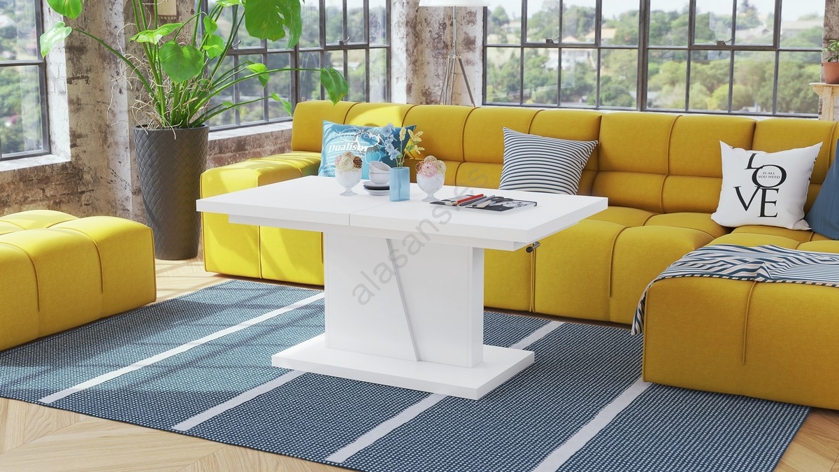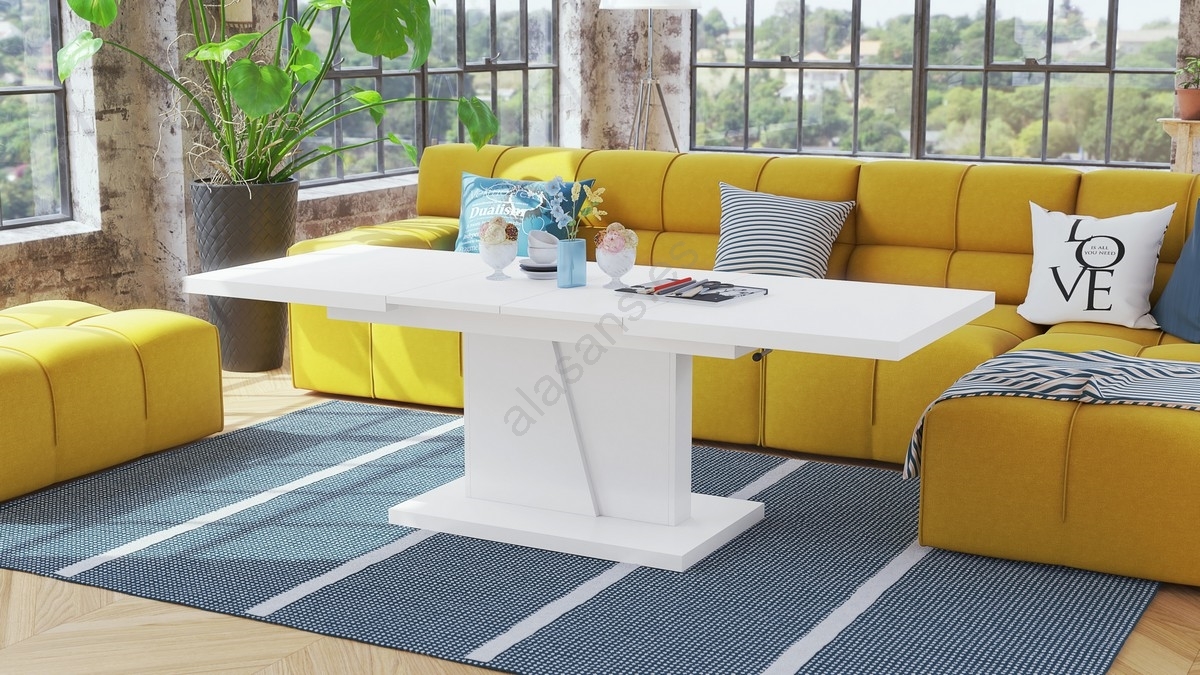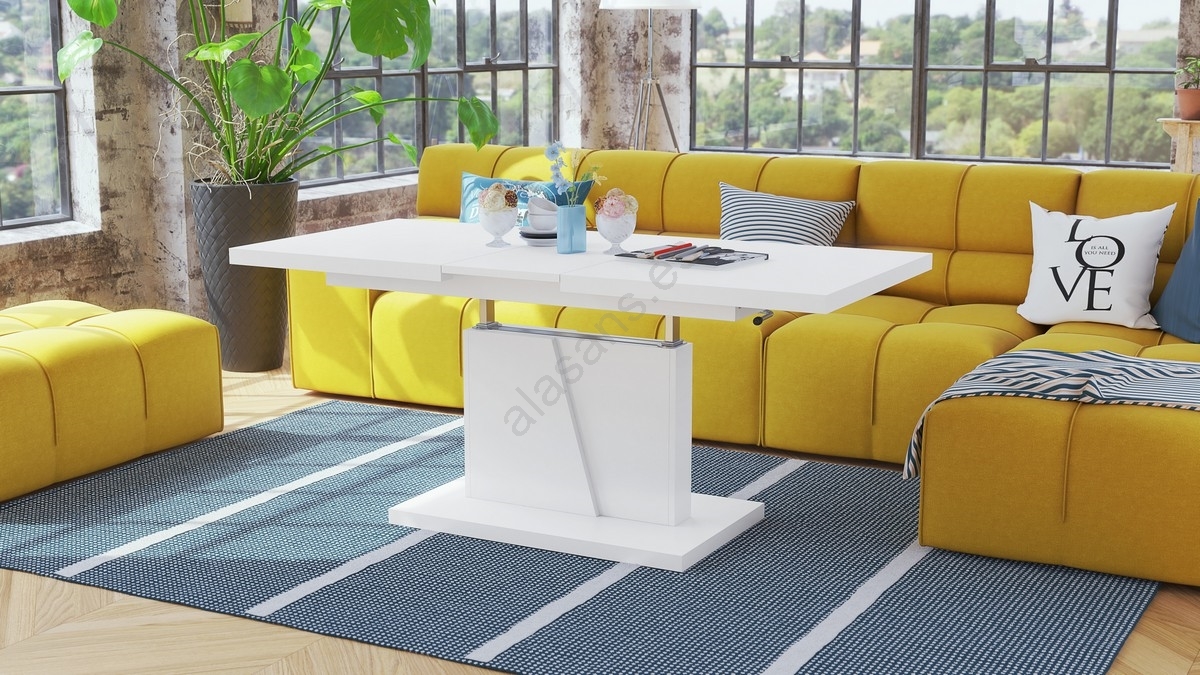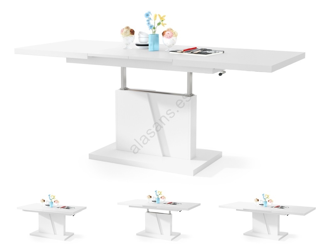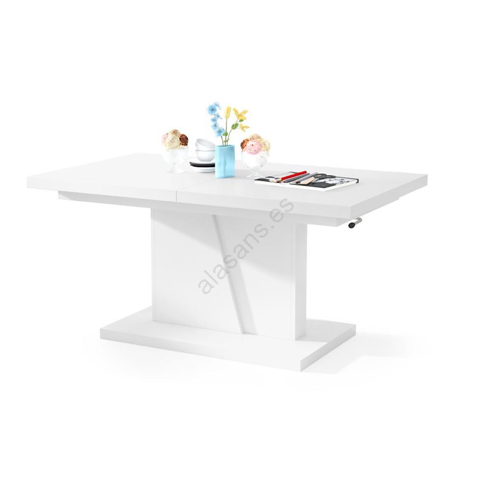 Mesa extensible de centro/comedor con tablero elevable NINO blanca