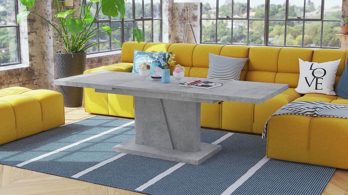 • Mesa extensible de centro/comedor con tablero elevable NINO gris cemento