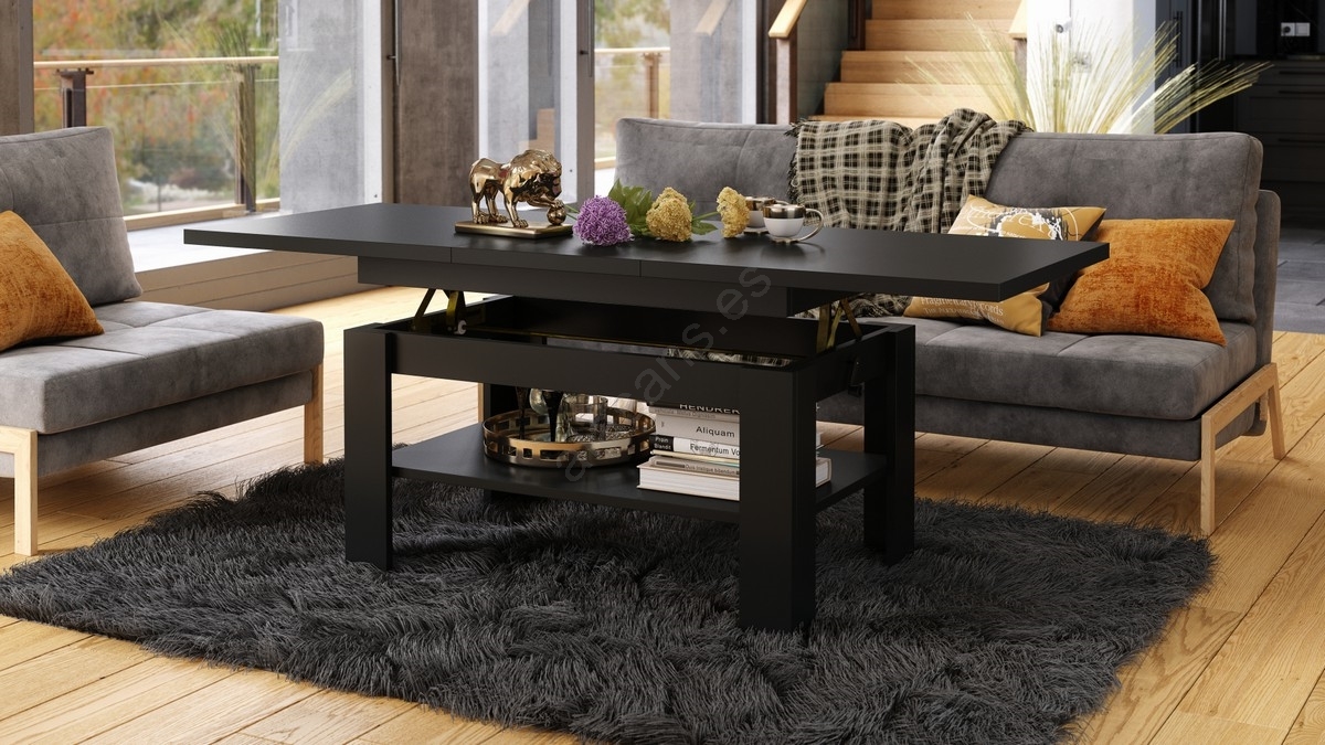 Mesa extensible de centro/comedor con tablero elevable ROY, negra