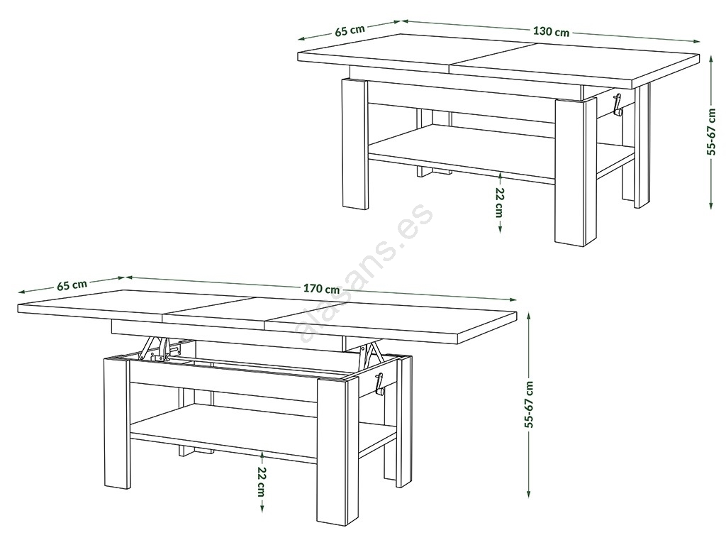 • Mesa de centro extensible con tablero elevable ROY