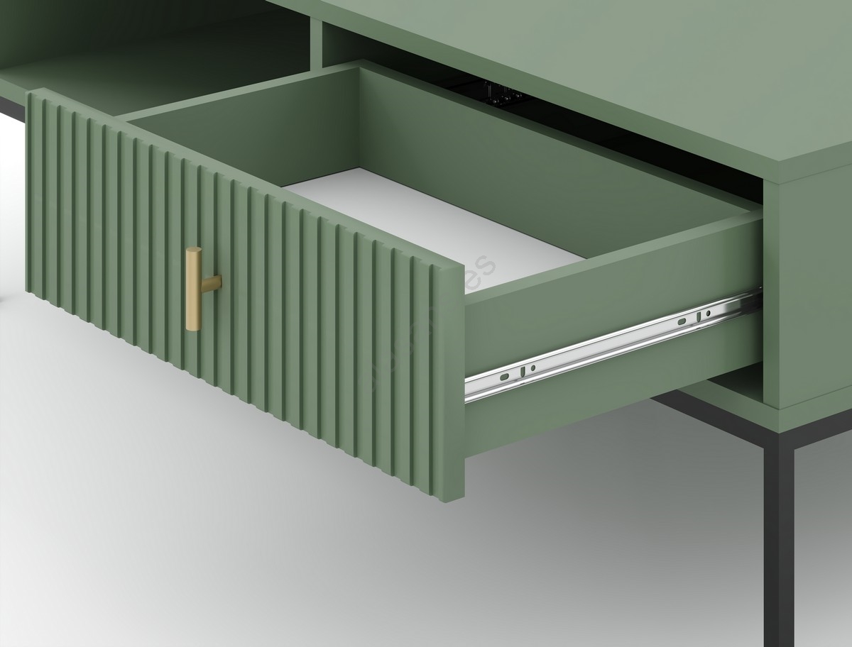 • Cuenta con un compartimento abierto y dos cajones decorados con acanalado vertical para un efecto visual refinado.