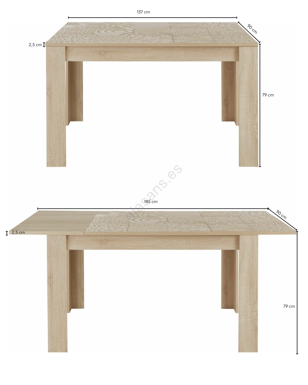 • Dimensiones de la mesa extendida: 185 x 90 cm