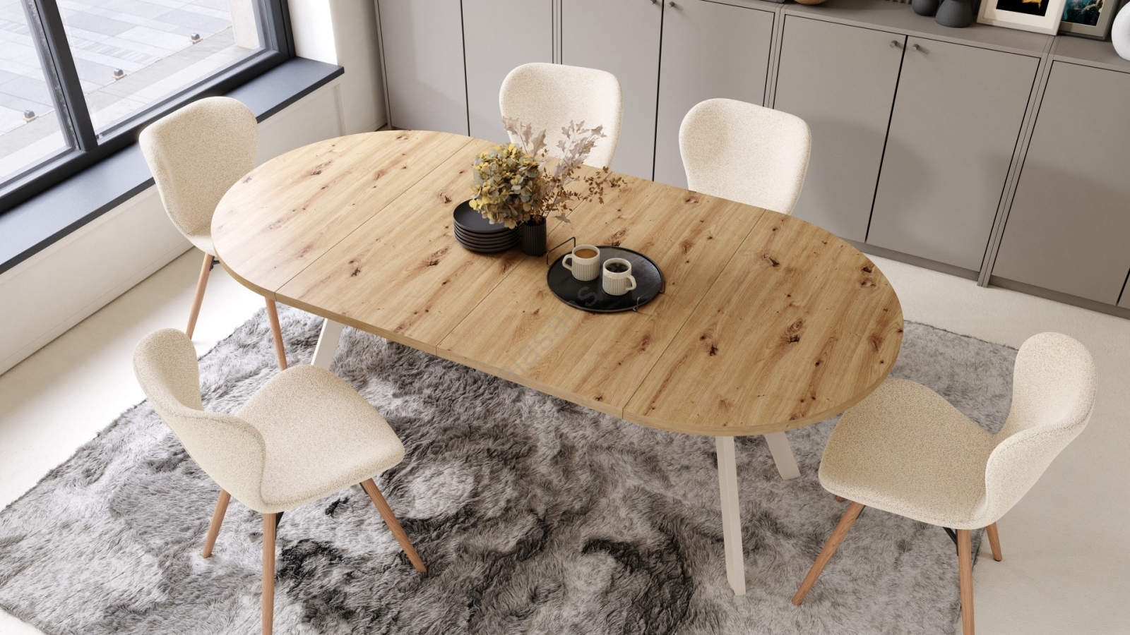 Mesa de comedor extensible ARTUR, roble artesano/beige
