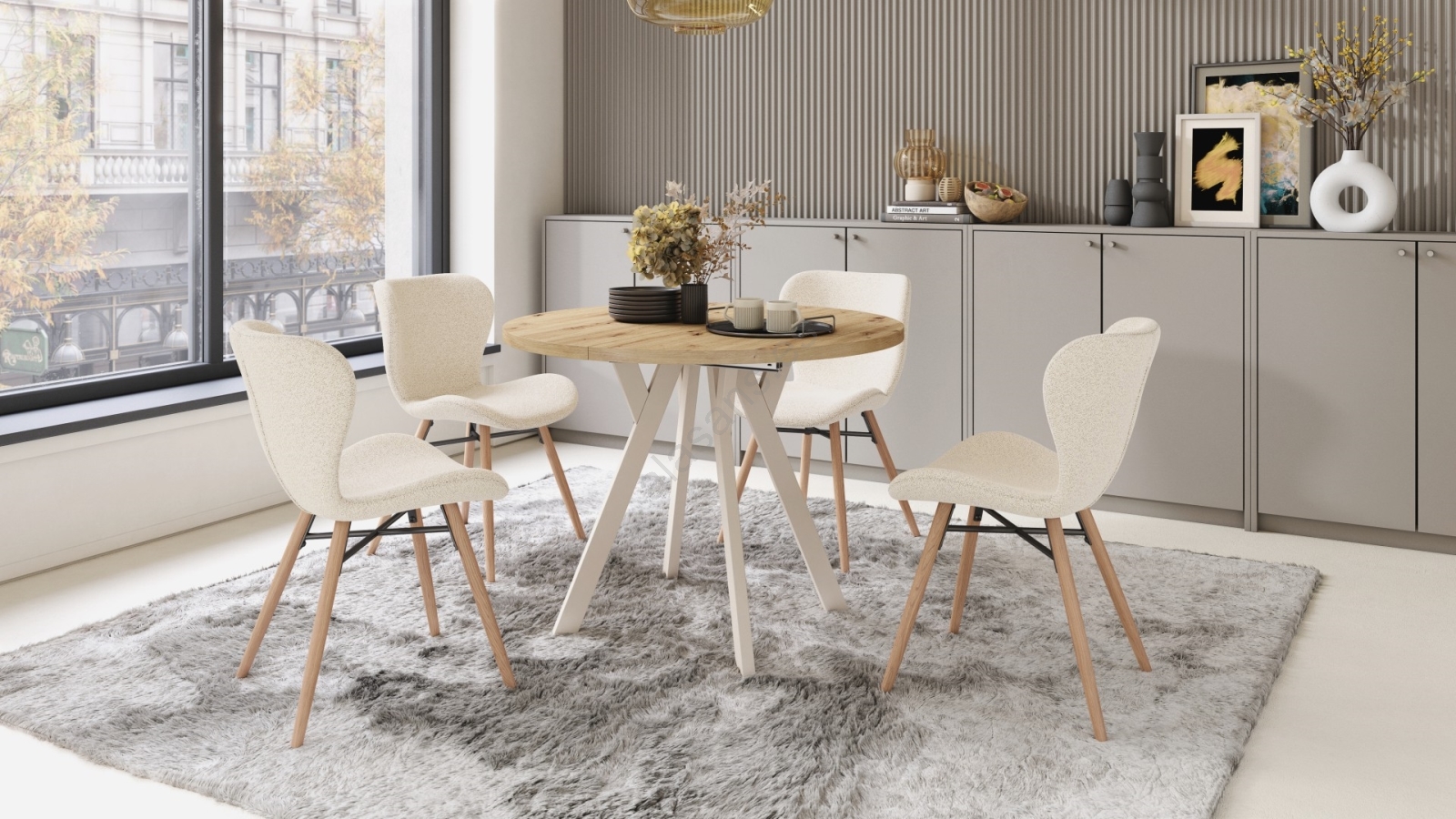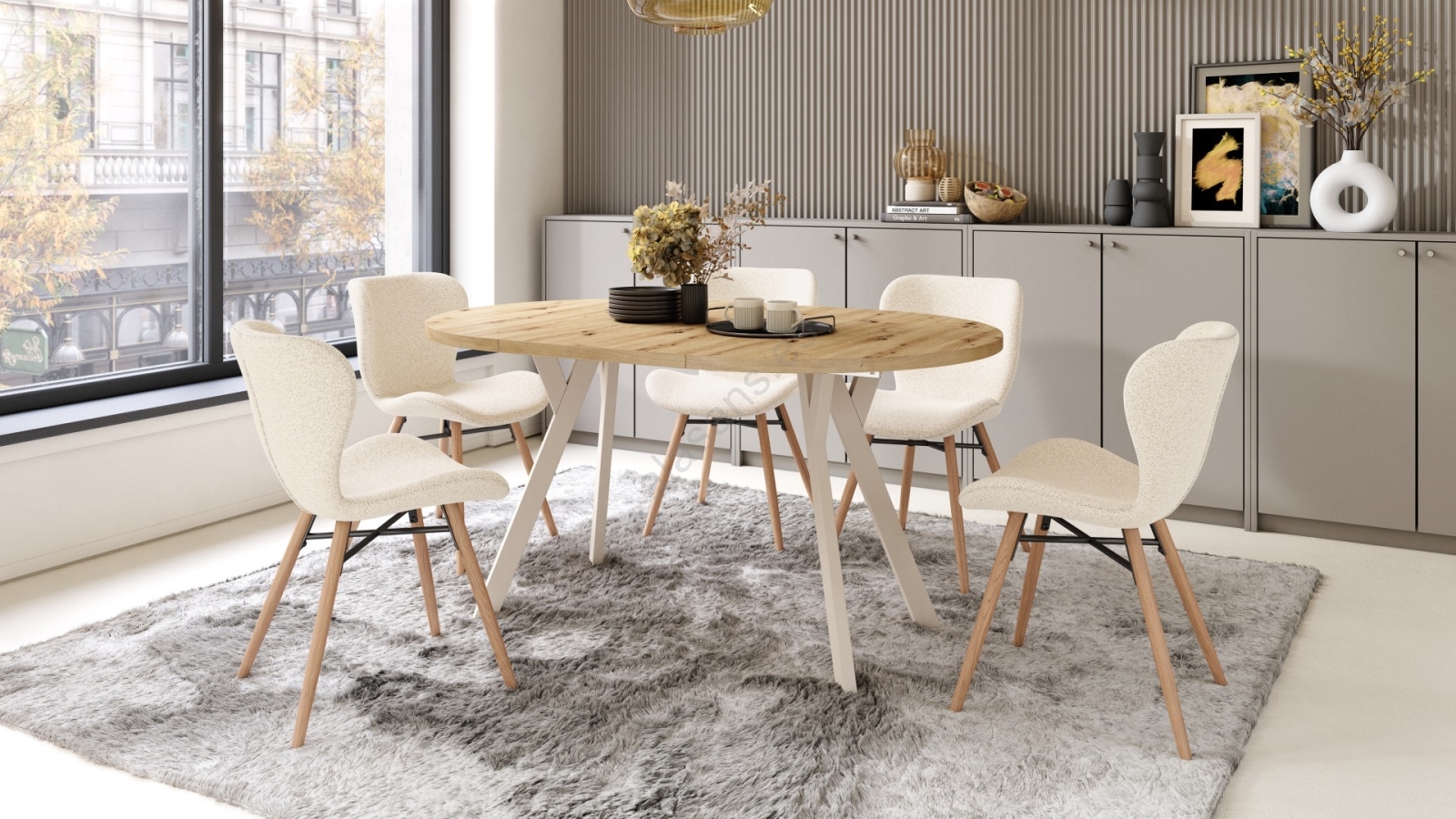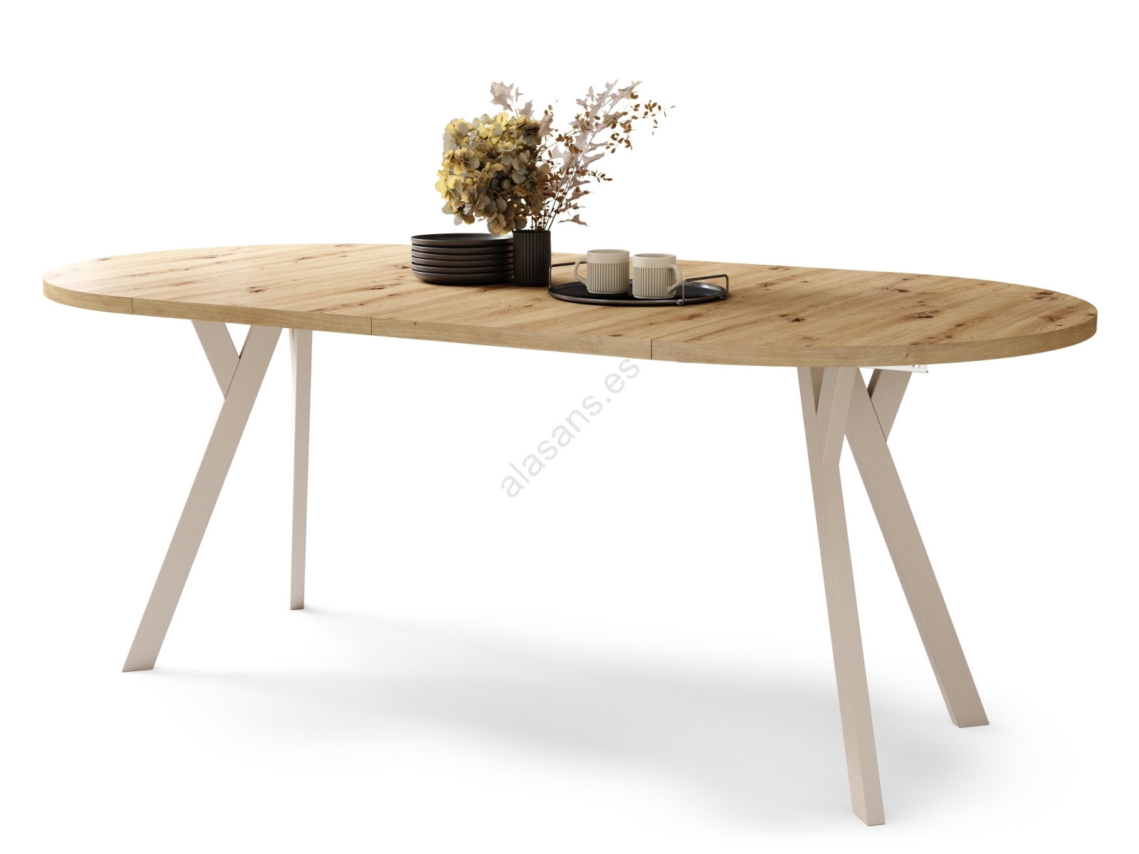 Mesa de comedor extensible ARTUR roble artisan/beige