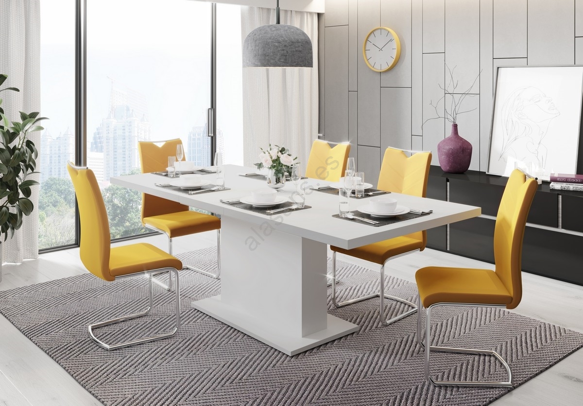 • Sus líneas limpias y su construcción lo convierten en un elemento central práctico y elegante del comedor, ofreciendo amplio espacio para sentarse y comer.