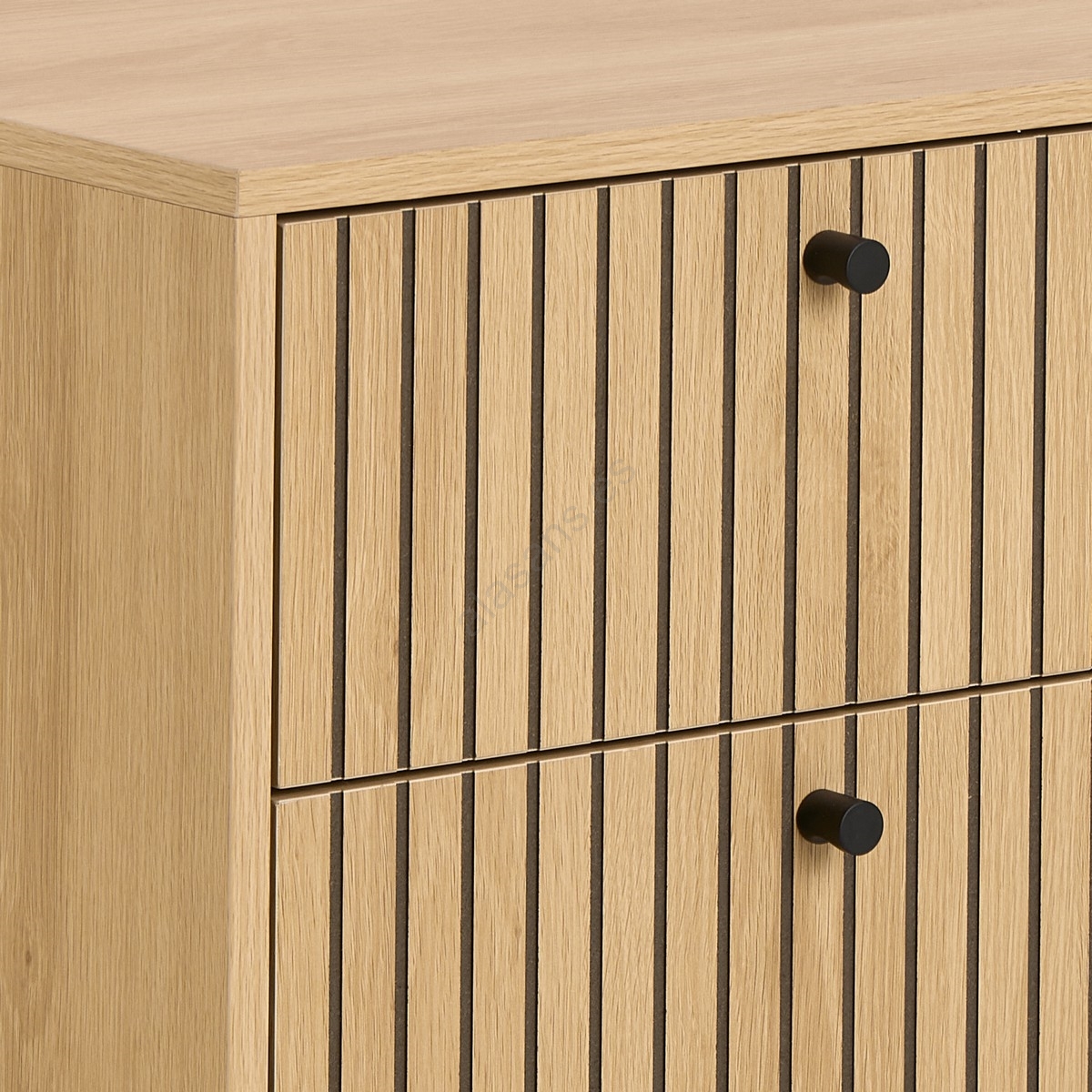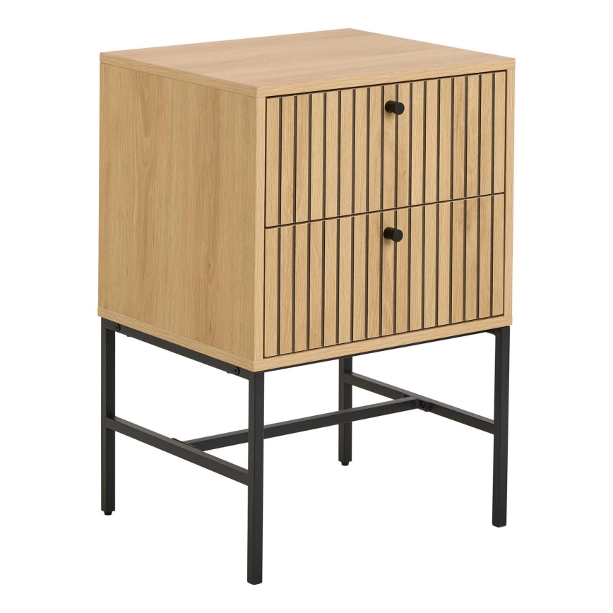 • Esta mesita con aspecto de roble y frente acanalado aporta estilo y funcionalidad a su hogar.