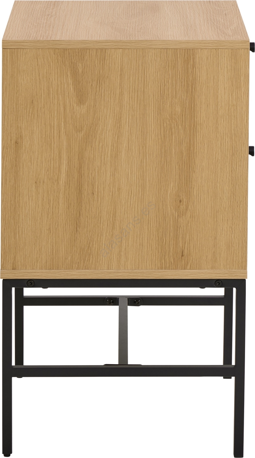• Estructura, tablero y 2 cajones en melamina craft de textura rugosa, base en acero con recubrimiento en polvo negro mate de acabado robusto.