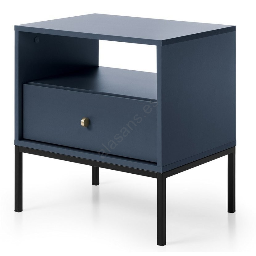 • Mesita de noche en acabado azul oscuro.