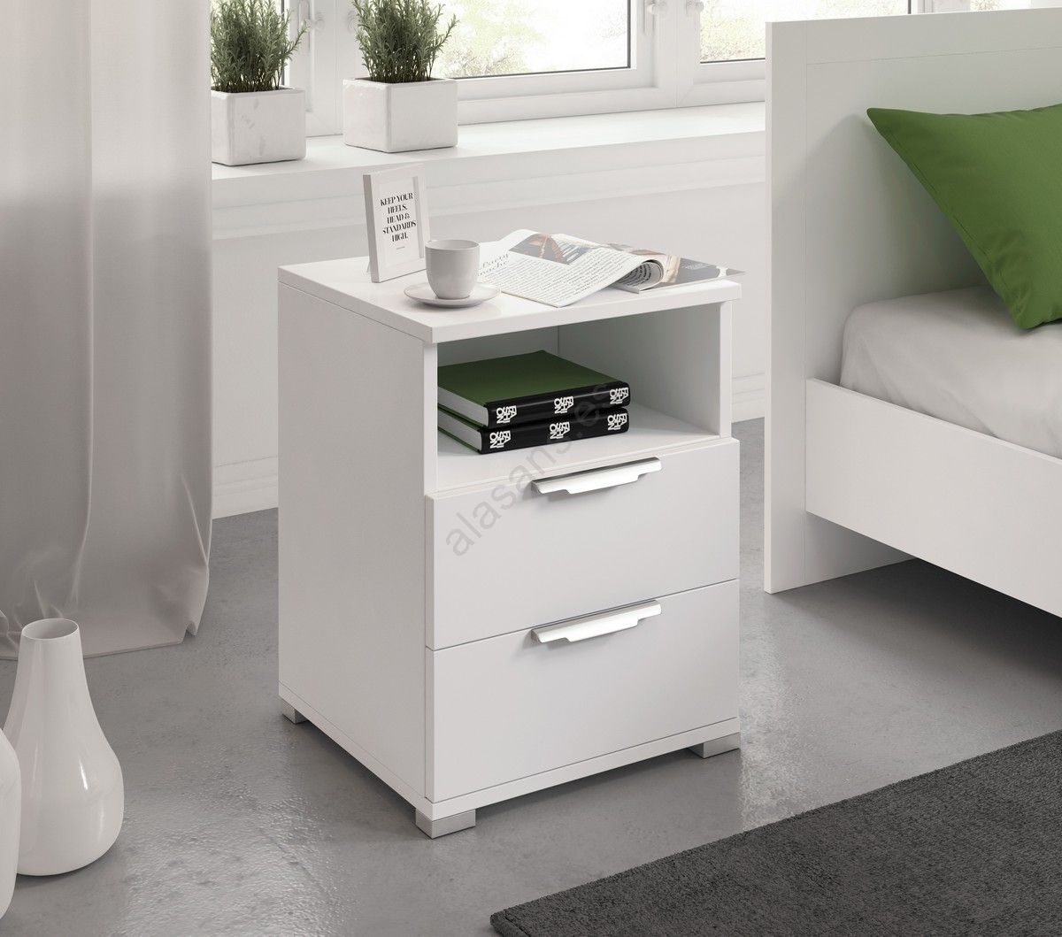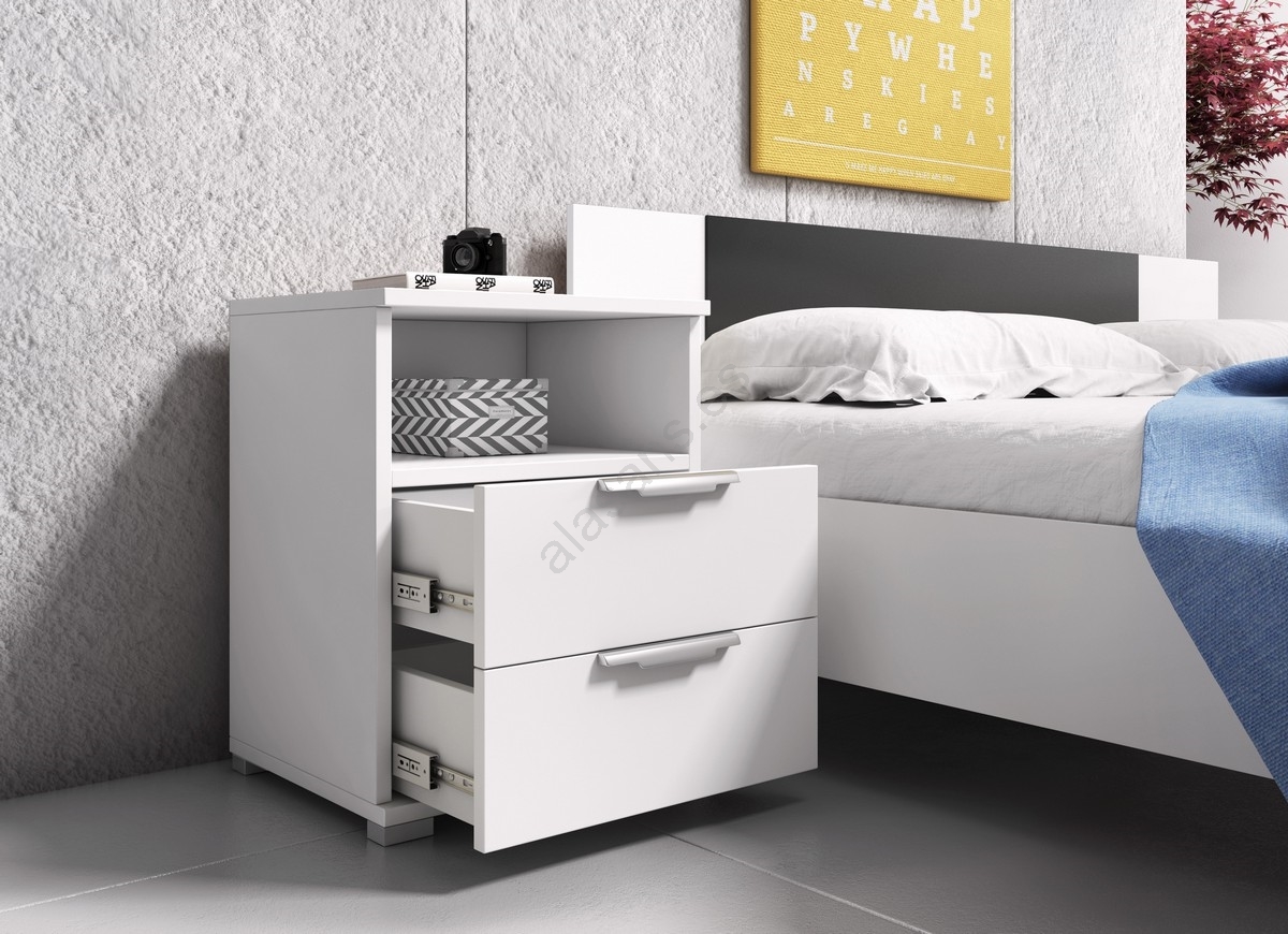 • Cuenta con dos cajones, el inferior con tirador y el superior sin tirador para un efecto minimalista y limpio.