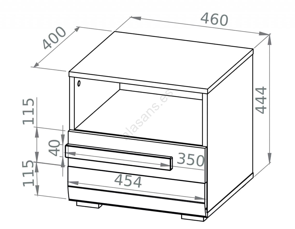 • Fabricado en aglomerado laminado.