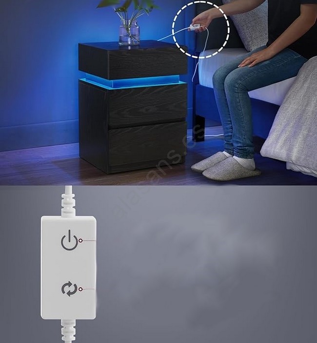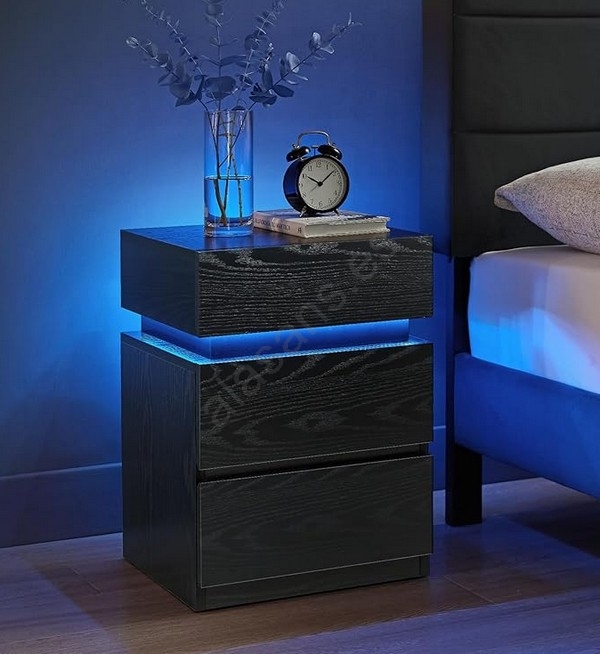 Mesita de noche SMARTIE con iluminación integrada, negra