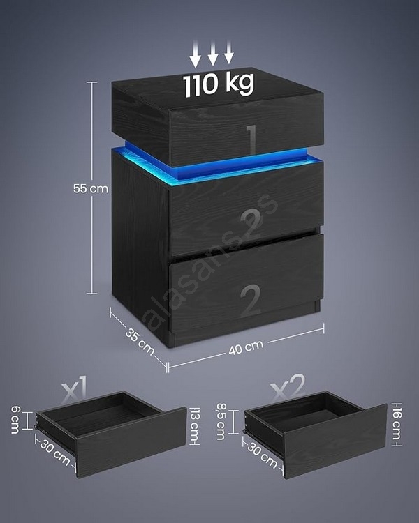 • Mesita de noche SMARTIE con iluminación integrada, negra