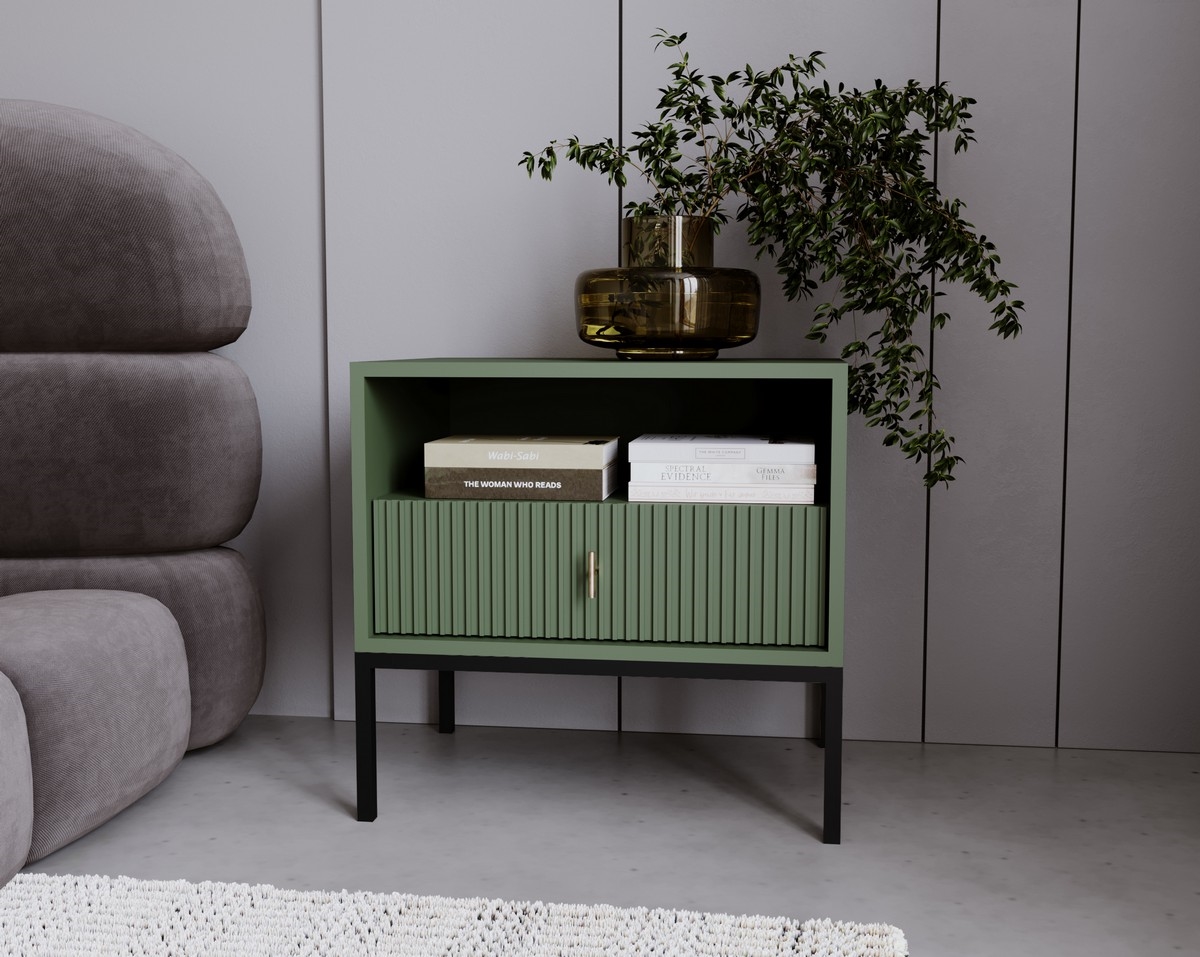 • Cuenta con un cajón decorado con acanalado vertical para un efecto visual refinado.