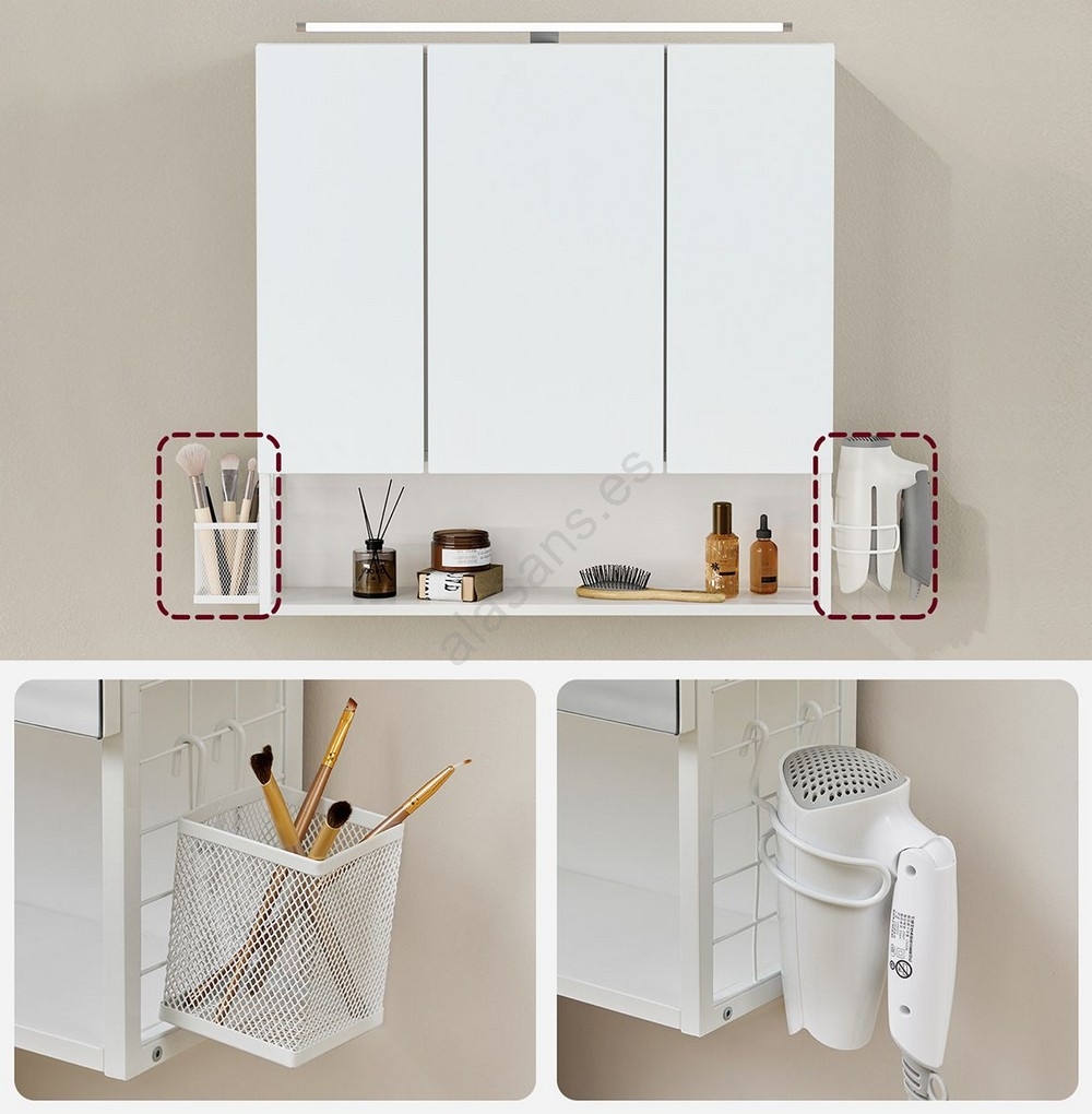 • Los estantes interiores mantienen tus cosméticos y artículos de higiene fácilmente accesibles.