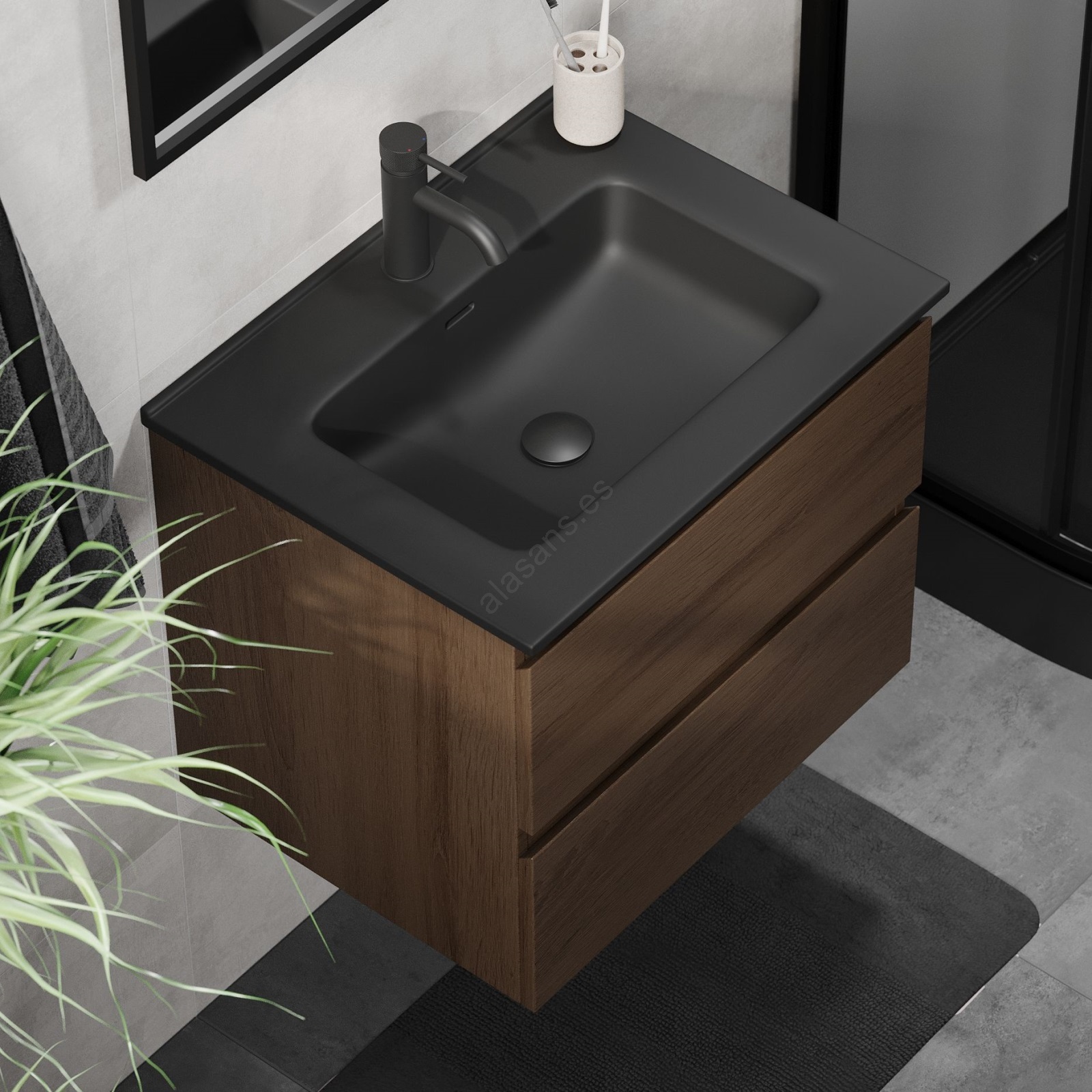 • Mueble de baño con lavabo KENWOOD 61 cm nogal/negro