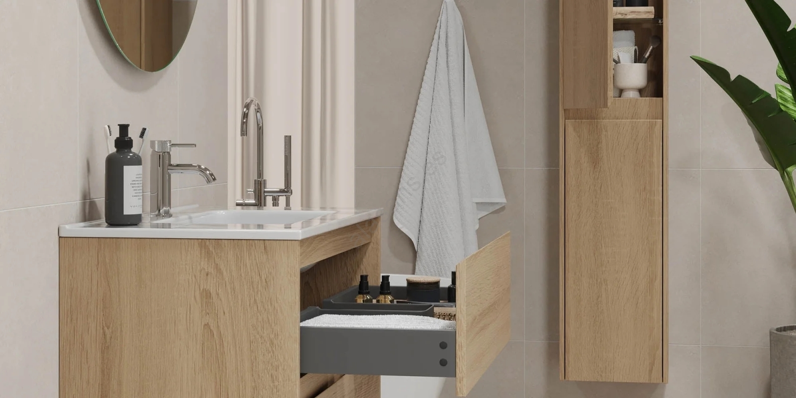 • Mueble de baño con lavabo MOLDE 60 cm de roble