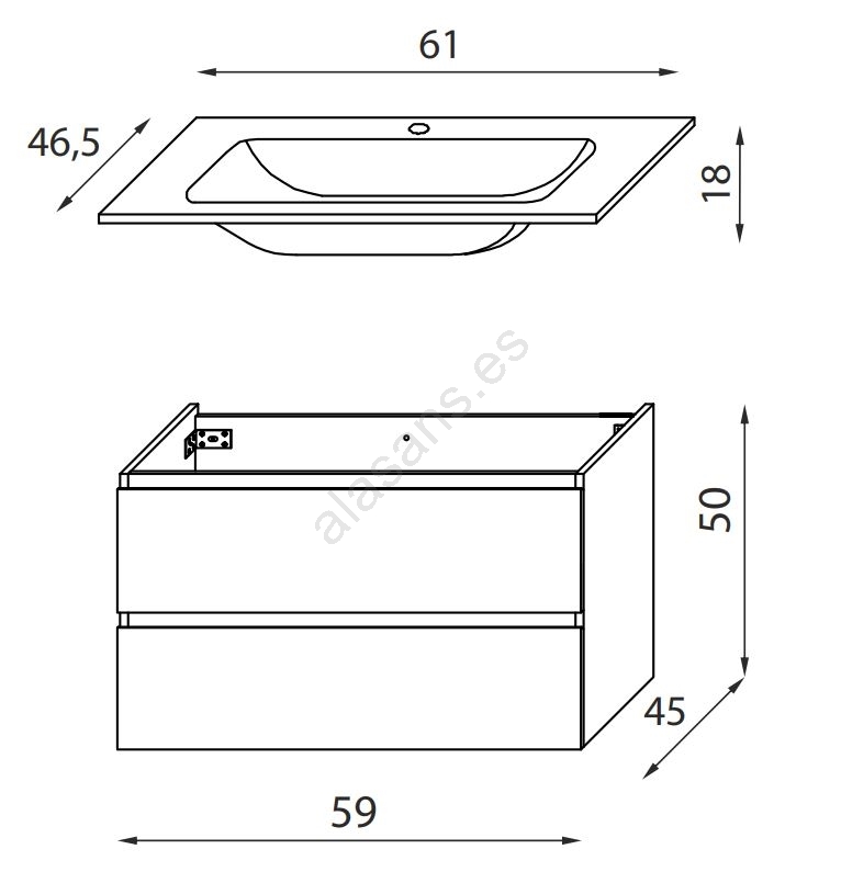 • El grifo de lavabo y la válvula de desagüe no están incluidos en el paquete.