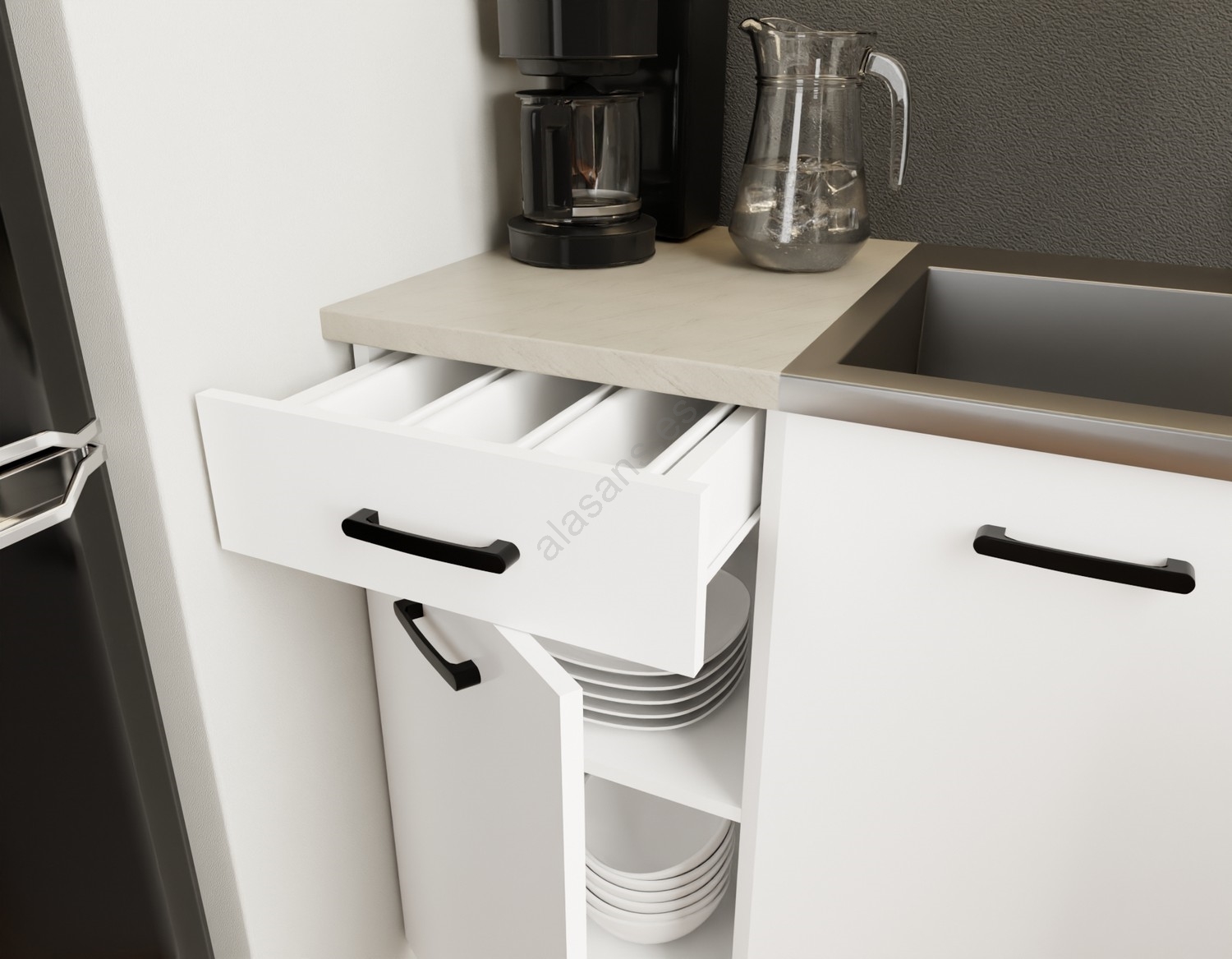 • La disposición de los armarios es modular, la cocina puede adaptarse a sus preferencias.
