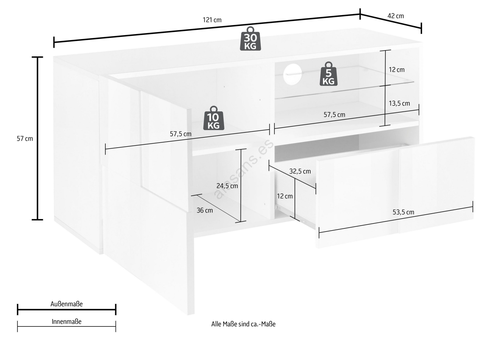 • Gracias a su alargada forma rectangular, es ideal para colocarlo bajo una televisión de pared o como solución de almacenaje moderna en el salón.