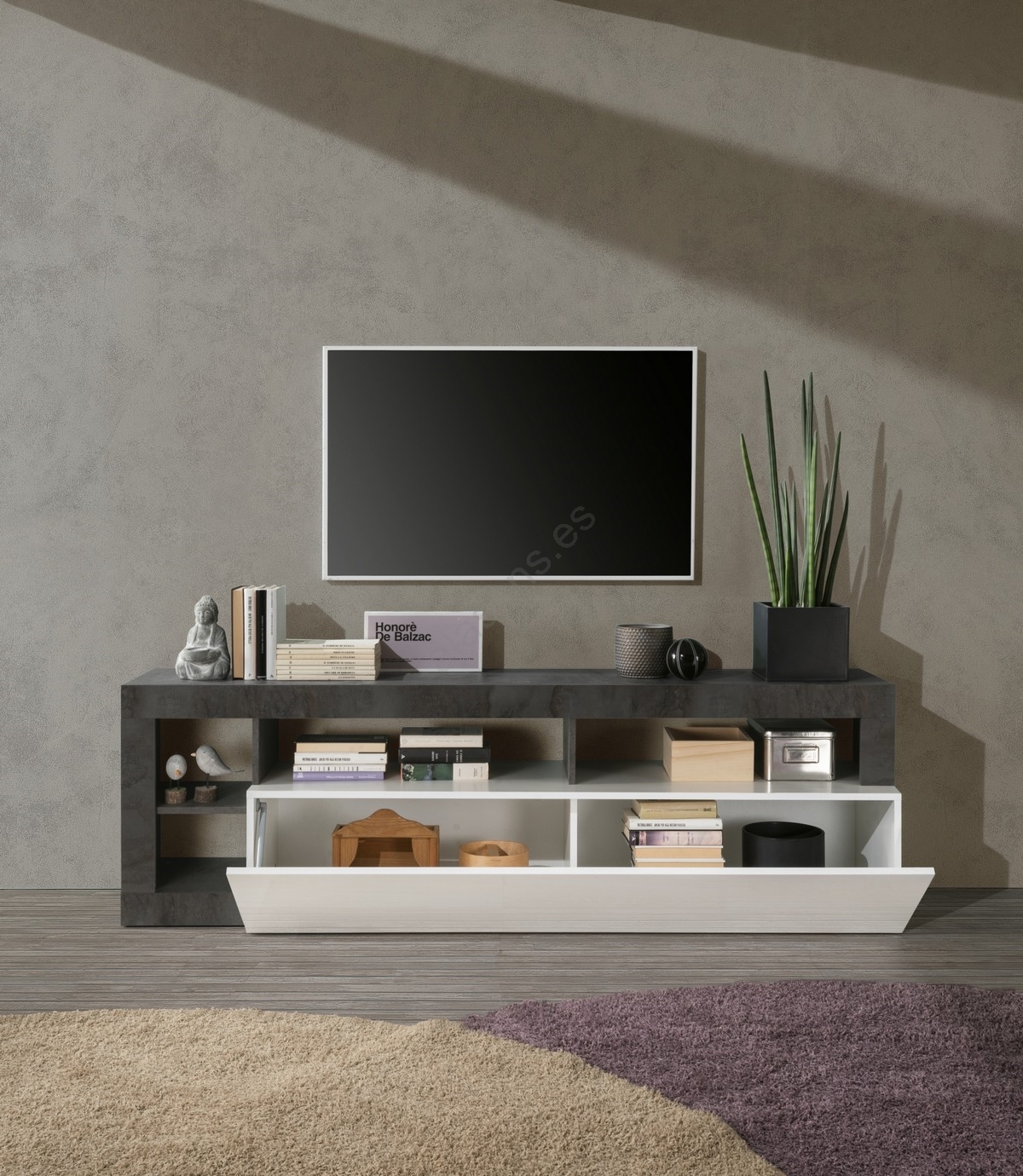 • Mueble para TV LENOR blanco/gris efecto hormigón