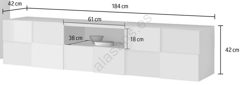 • Gracias a su alargada forma rectangular, es ideal para colocar bajo un televisor montado en la pared o como solución de almacenamiento moderna en el salón.