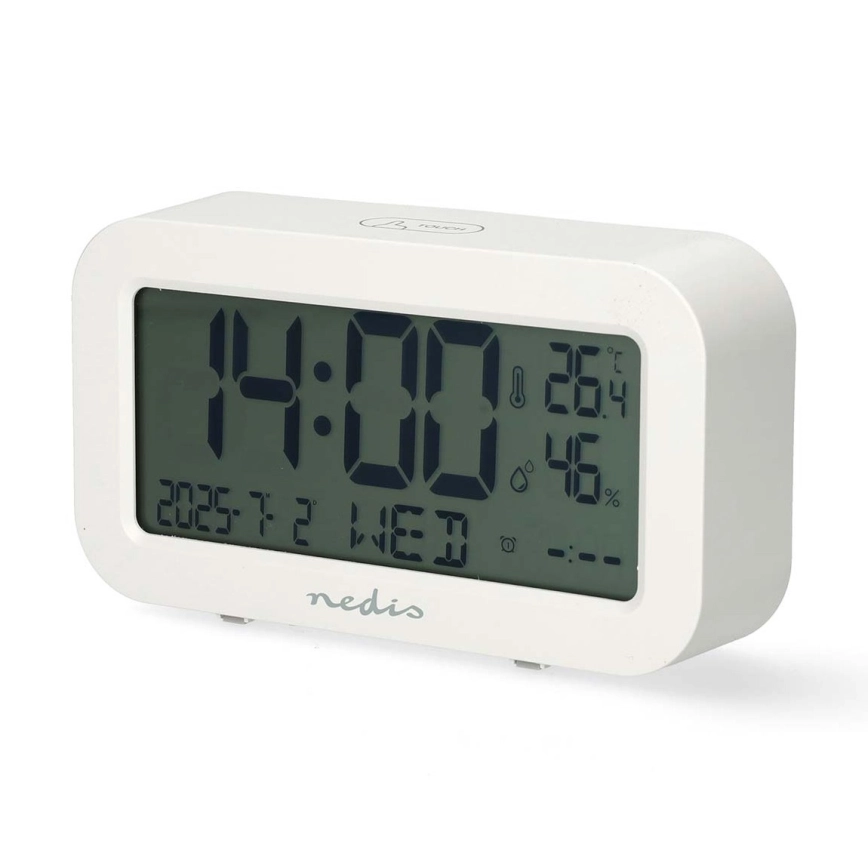 Reloj digital con alarma, termómetro e higrómetro 2xAA blanco