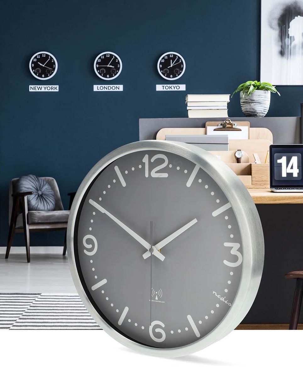 Reloj de pared diámetro 30,5 cm 1xAA cromo mate/gris