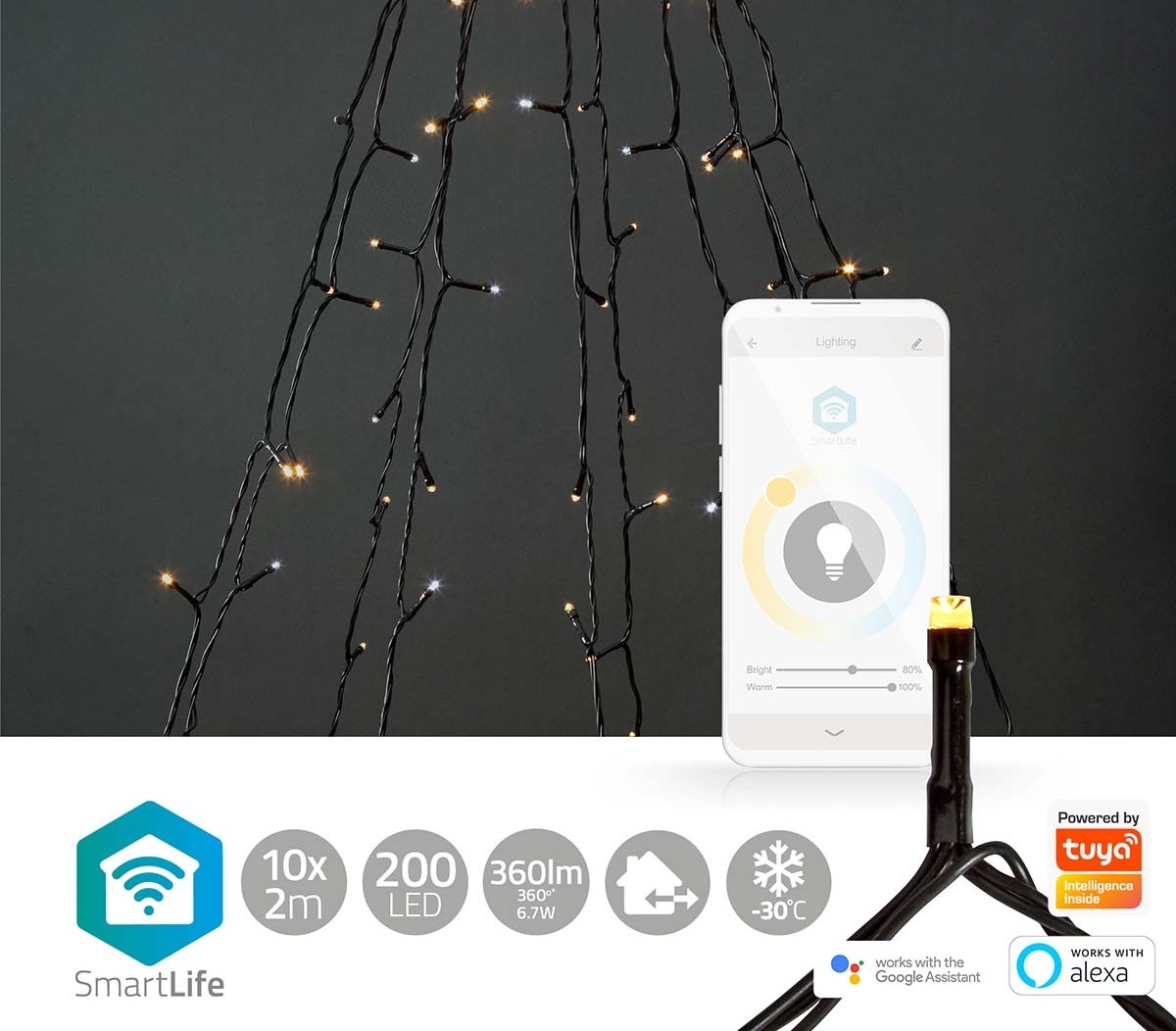 Cortina de luces LED navideñas para exterior 200xLED/8 funciones 10x2m IP65 Wi-Fi Tuya blanco cálido a frío