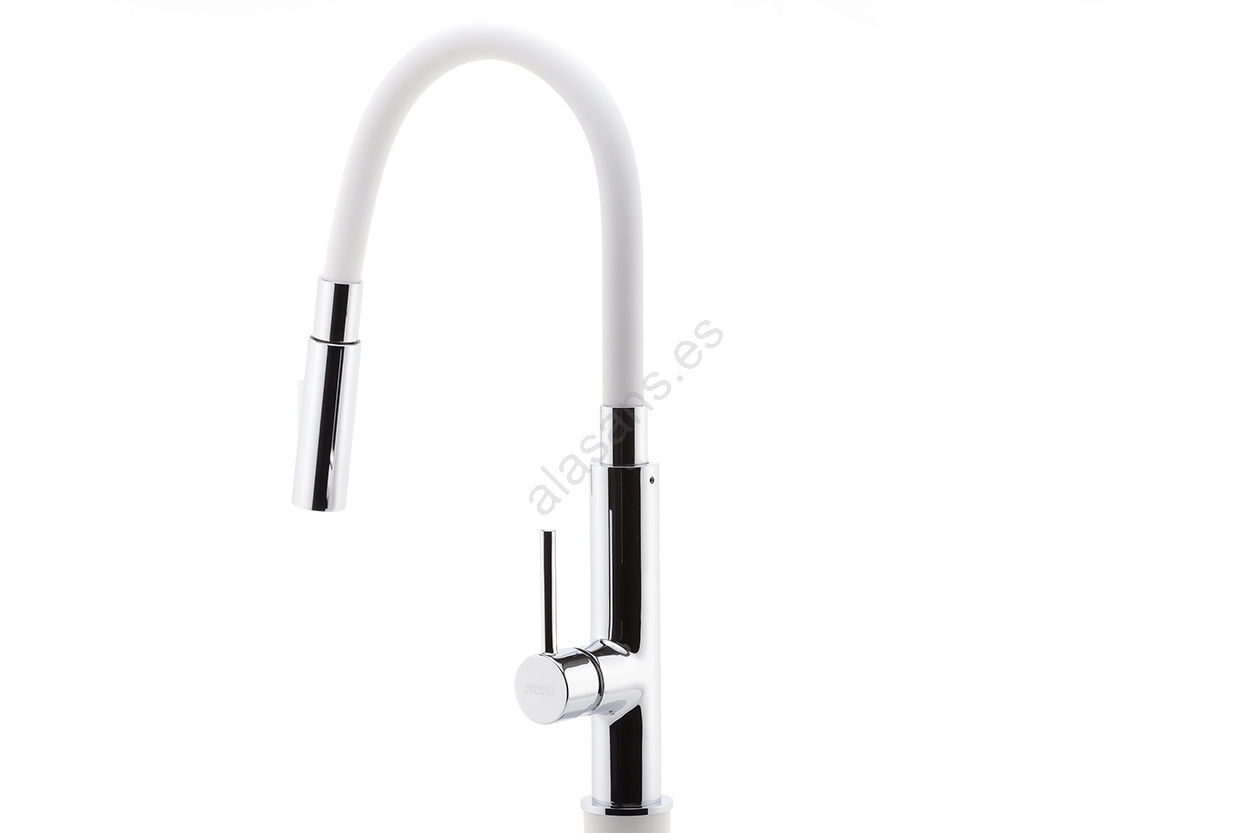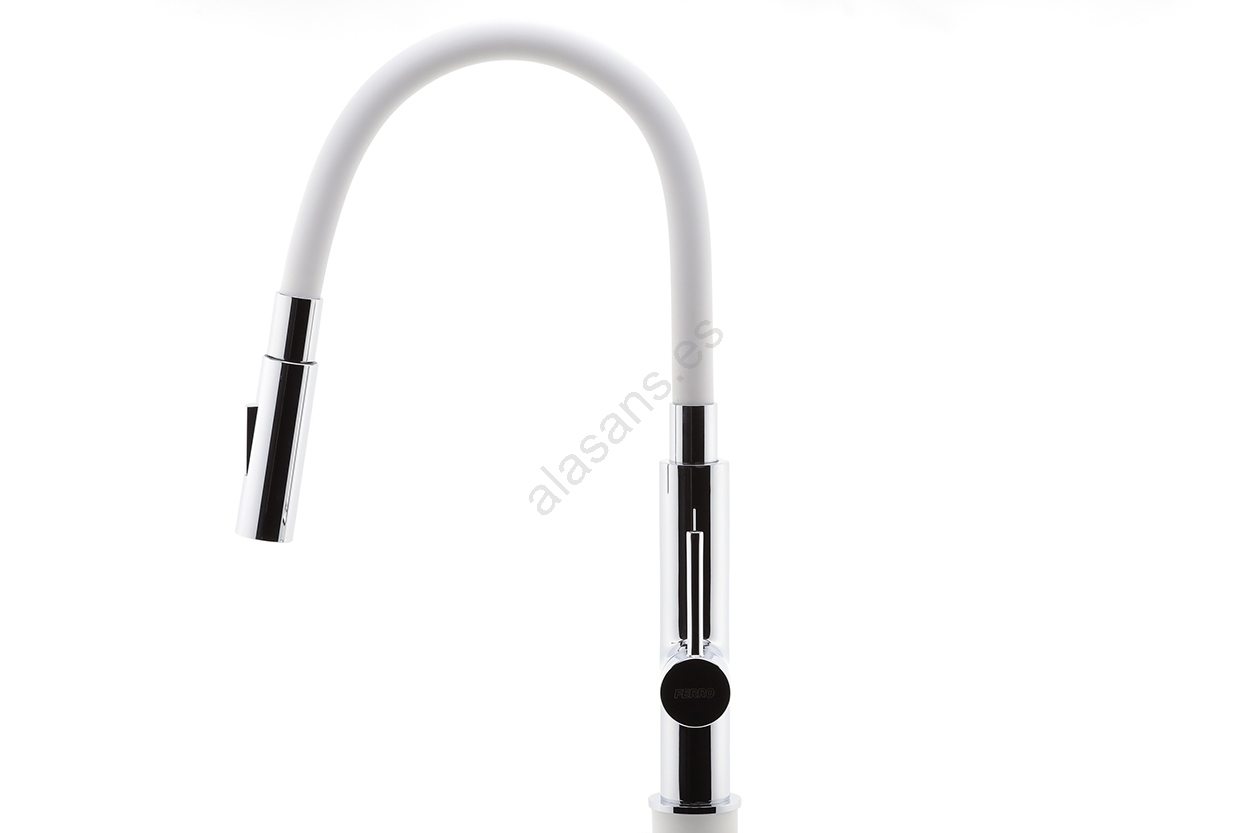 FERRO - Grifo de fregadero con brazo flexible cromo brillante/blanco