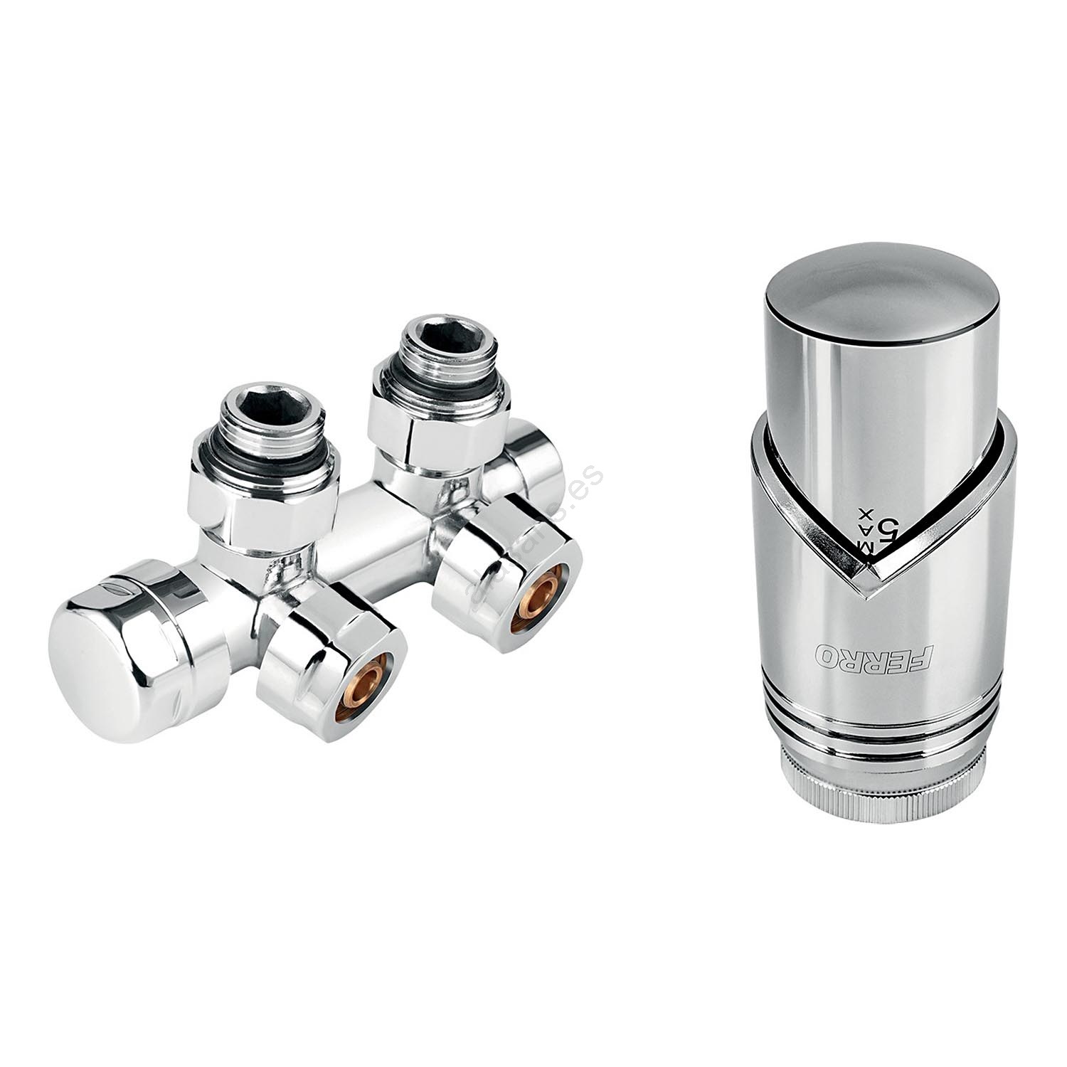 Novaservis - Juego esquinero para radiadores con conexión central, acabado en cromo brillante