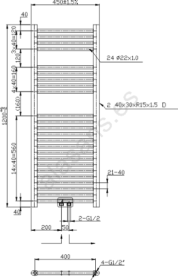 Novaservis - Radiador toallero tipo escalera para baño 318W/230V 120x45 cm cromado brillante recto