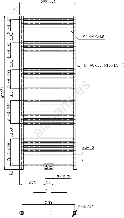 Novaservis - Radiador toallero en escalera para baño 836W/230V 160x60 cm negro recto