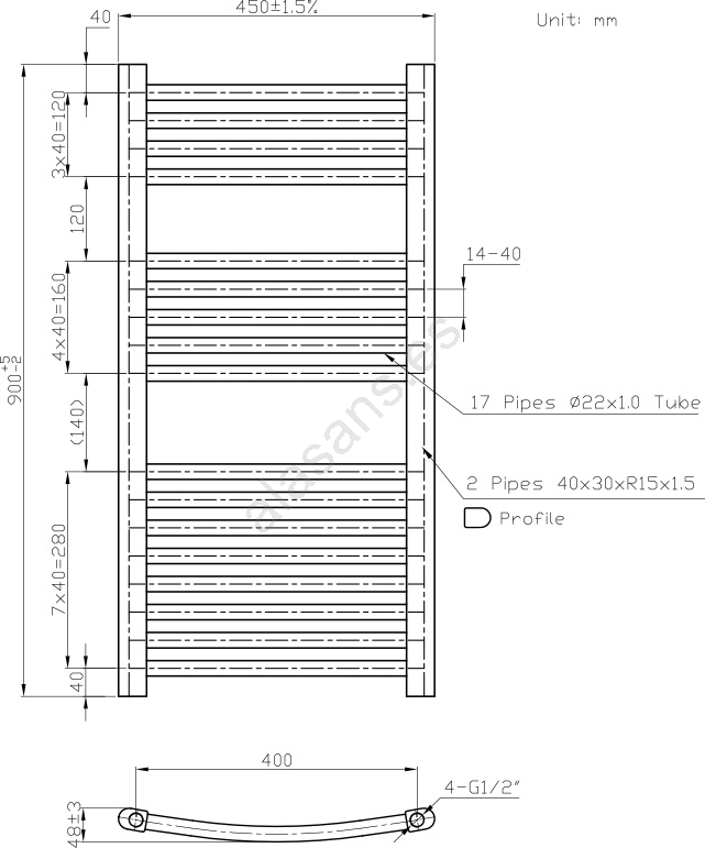 • Diámetro de los tubos: 22 mm.