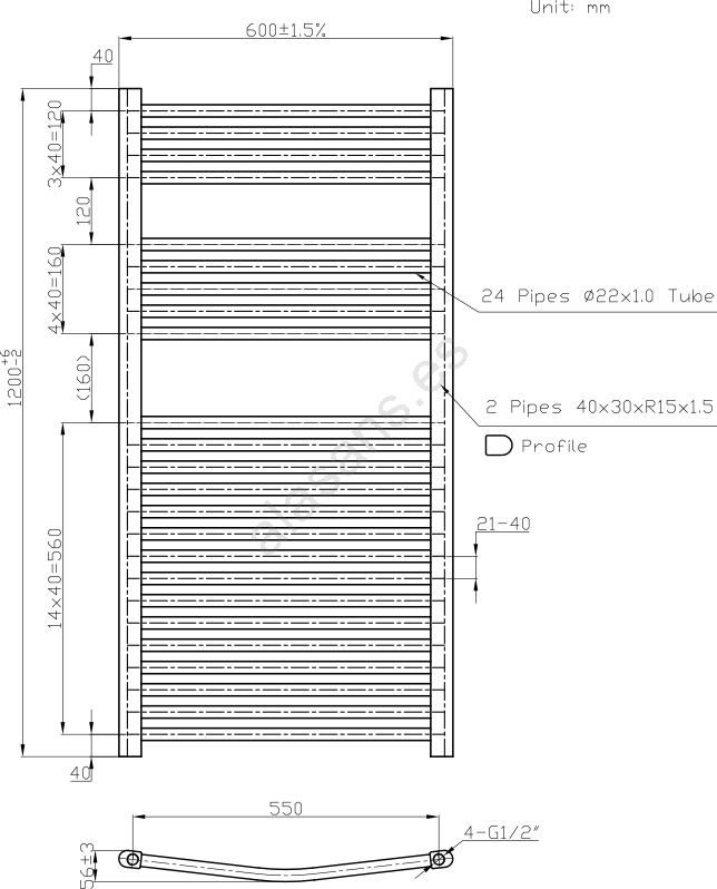 • El radiador incluye tapón, tapón con purgador y 4 soportes de montaje.
