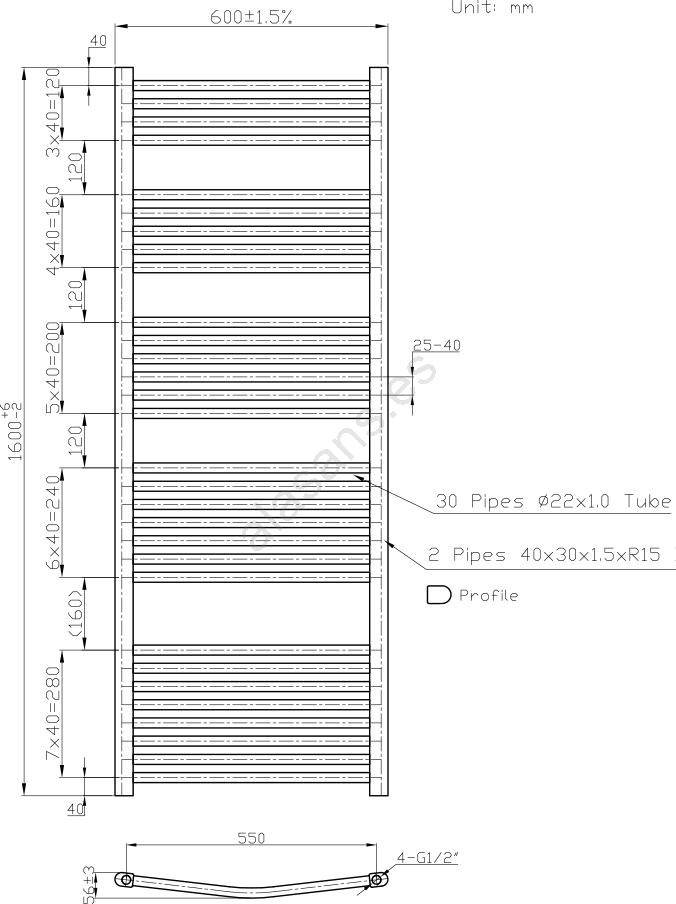 • El radiador incluye tapón, tapón con purga y 4 unidades de soportes de montaje.