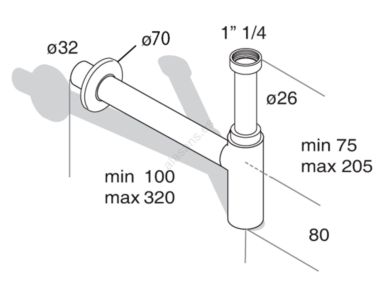 • El diámetro del desagüe es de 32 mm y la rosca mide 5/4".